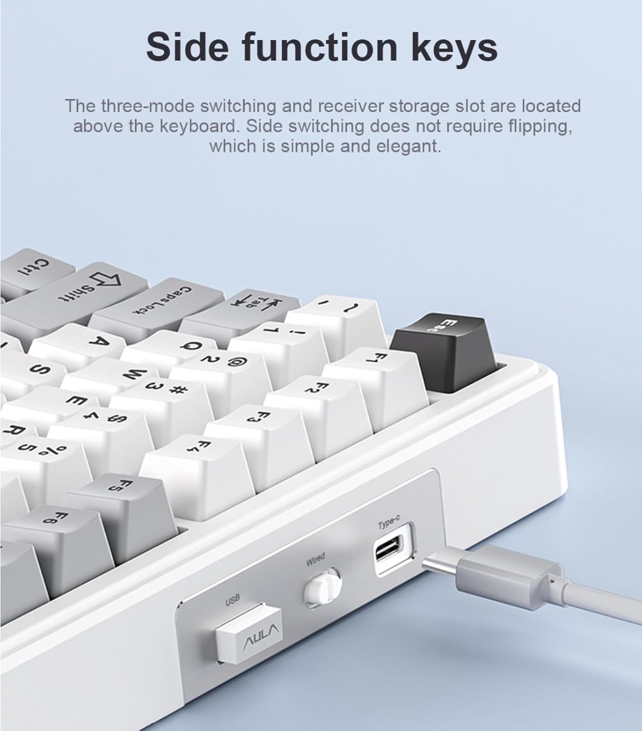 - Tri-mode Connection Mechanical Keyboard: AULA F99 Pro wireless mechanical keyboard provides three connection methods, including BT5.0, 2.4GHz wireless mode, and USB-C wired mode. It can be connected to up to five devices at the same time, and switch between them easily by FN and key combination keys and side button. No limits about your keyboards connection to meet the needs of work, gaming, study and vacation.