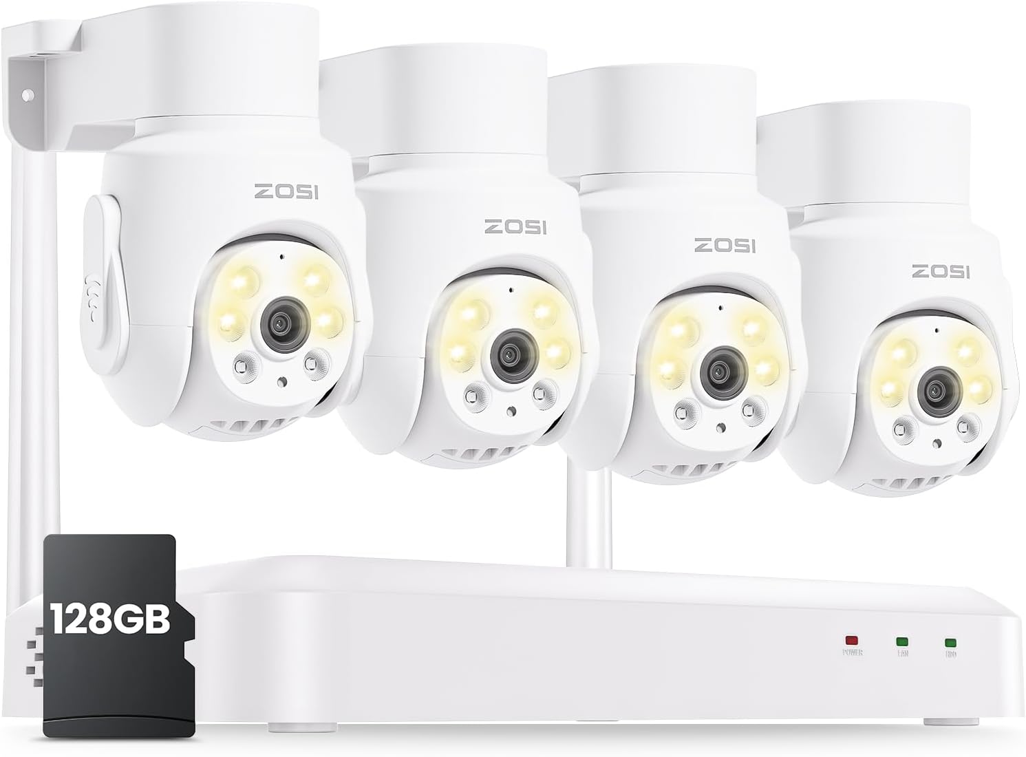 ZOSI 8 Channel 3K Wi-Fi 6 Security Camera System with 128G Memory Card for 24/7 Record, 4 x 5MP Pan Tilt WiFi Camera with Auto Tracking, Color Night Vision, Plug-in, AI Person Detect, 2-Way Audio