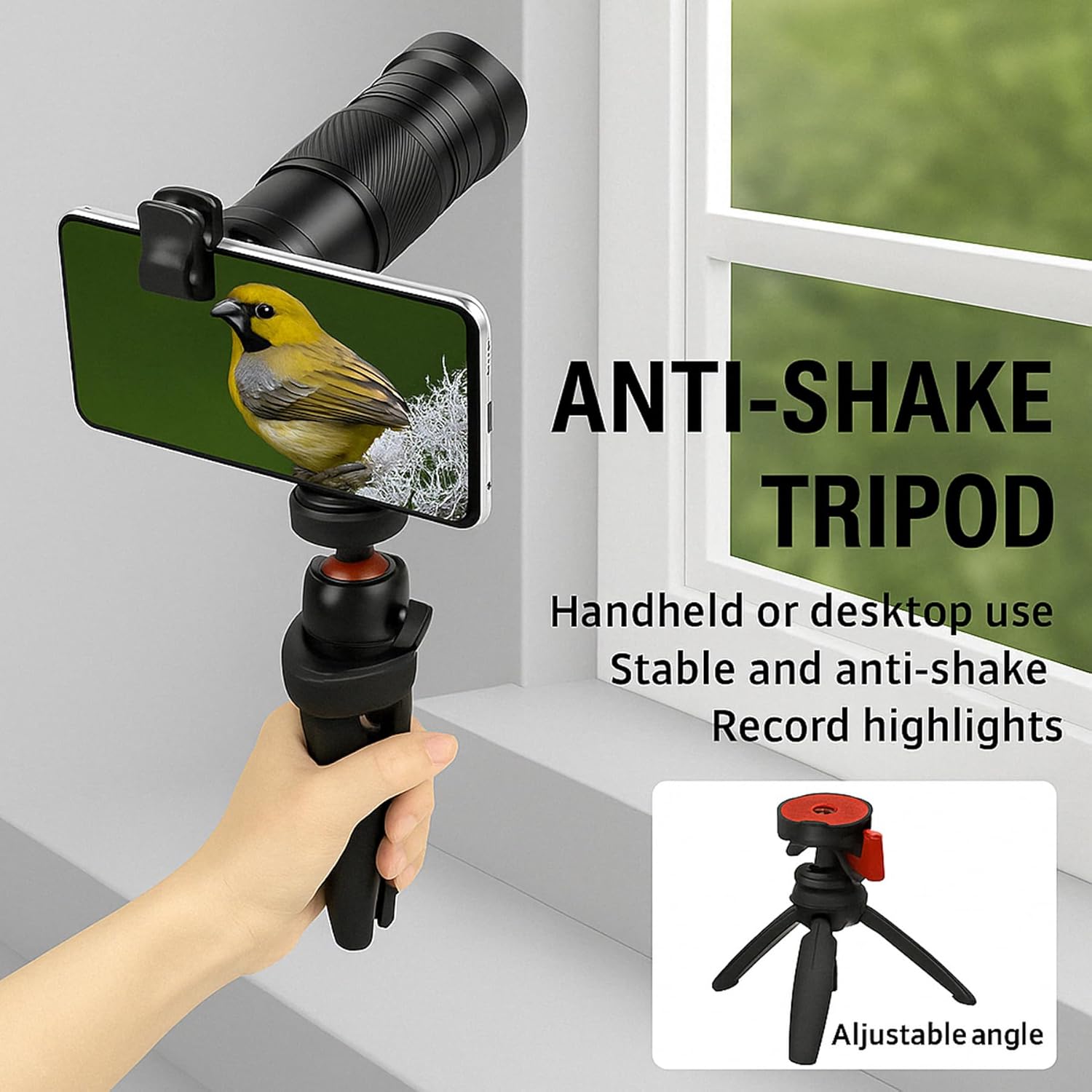 - 🔭Portable & Travel-Friendly: Lightweight design with a foldable tripod fits easily into your bag or pocket. Take it anywhere for stunning long-distance shots without carrying bulky cameras.