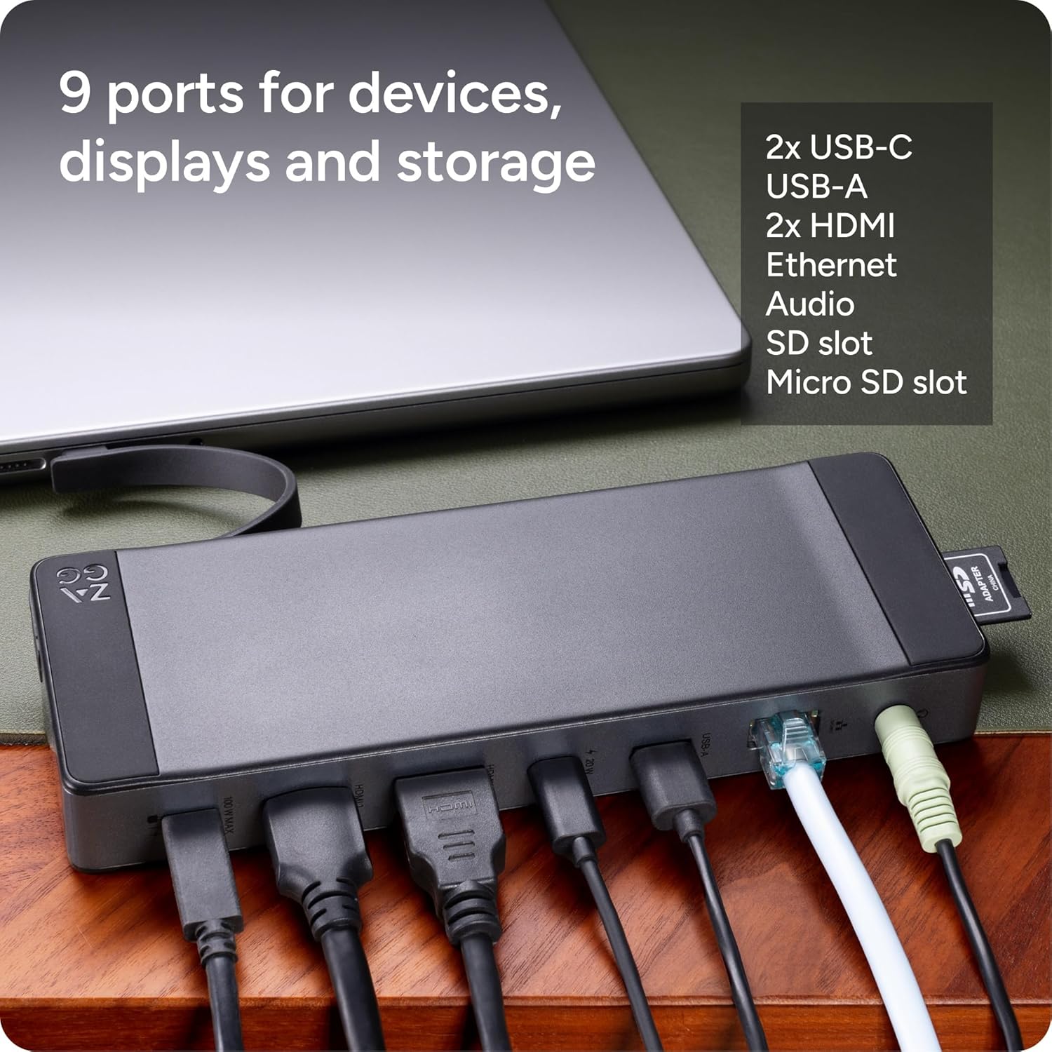ZAGG 9-Port Hub – 2 USB-C, 2 HDMI (4K 60Hz), 1 USB-A (10Gbps), Ethernet, Audio Jack, SD & MicroSD Card Readers - Multi-Device Connectivity for iPadOS, ChromeOS, Android, Windows