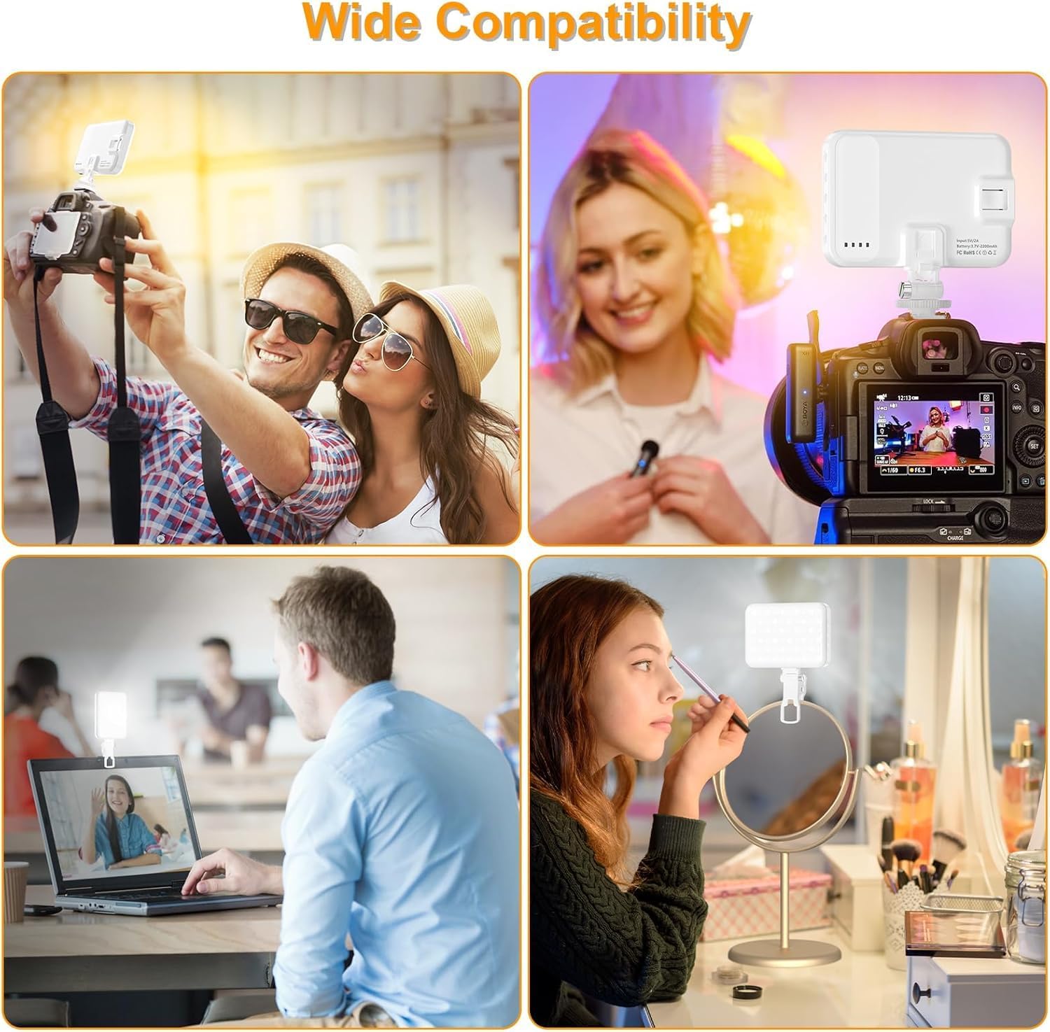 Selfie Light, LED Camera Light Video Lights 60 LED 2200mAh Rechargeable Phone Light 7 Modes, 10-Level Brightness, Portable Clip on Light for Phone/Tablet/Laptop White