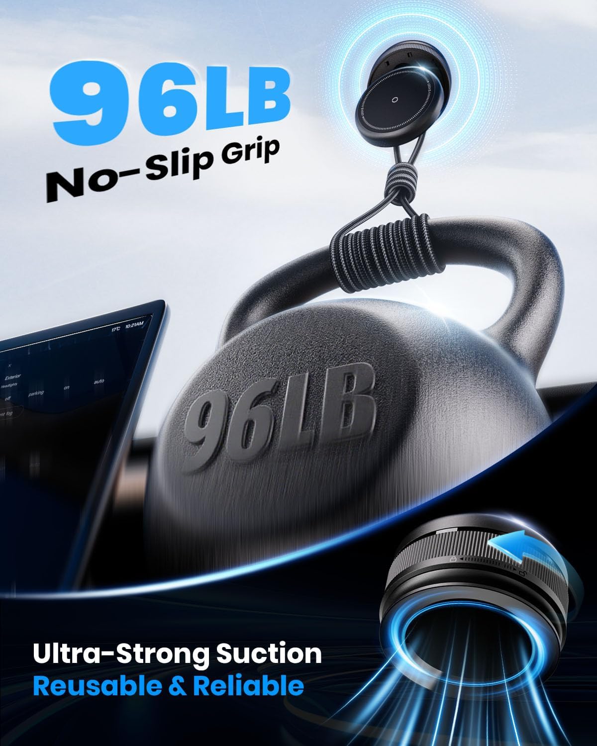 - 【Mount Up in 3 Seconds】 Secure your magnetic phone holder for car in just 3 seconds. Press the suction cup to remove air, then twist to lock and create strong vacuum suction. No tools, no hassle—just a quick setup that gives your phone a firm, steady hold wherever you mount it.