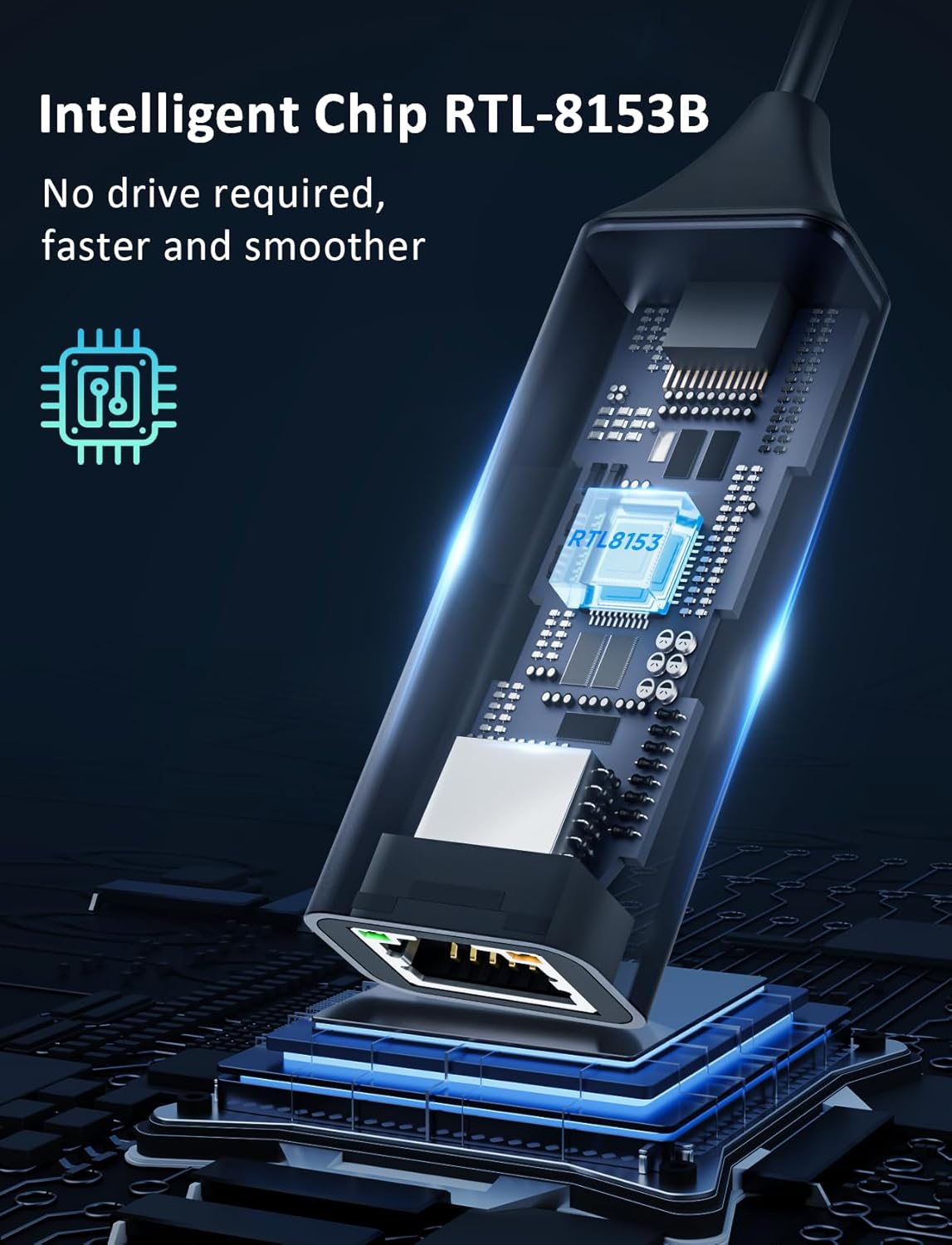 - DAC Chip: This usb to ethernet adapter for laptop is equipped with the smart chip RTL8153, which reduces heat dissipation, provides stable performance, and ensures that the network is always in optimal operating condition