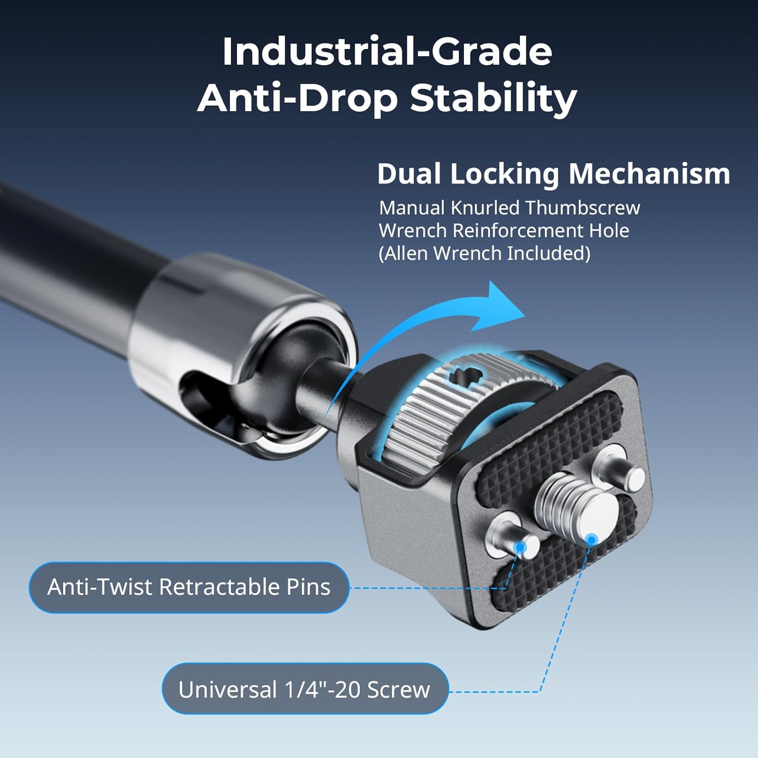 - Wide Compatibility: Magic arm comes with one end features a 1/4"-20 screw and retractable pins to connect any on-camera flashlights, microphone, LCD monitor, microphone or action camera. This magic arm effectively prevents twisting of devices, such as cages for GoPro (ID 3084C), for Insta360 X4 (ID 4278), and for DJI Action 5 Pro (ID 4119C). NOTE: The maximum payload is 1.5kg (3.3lb).