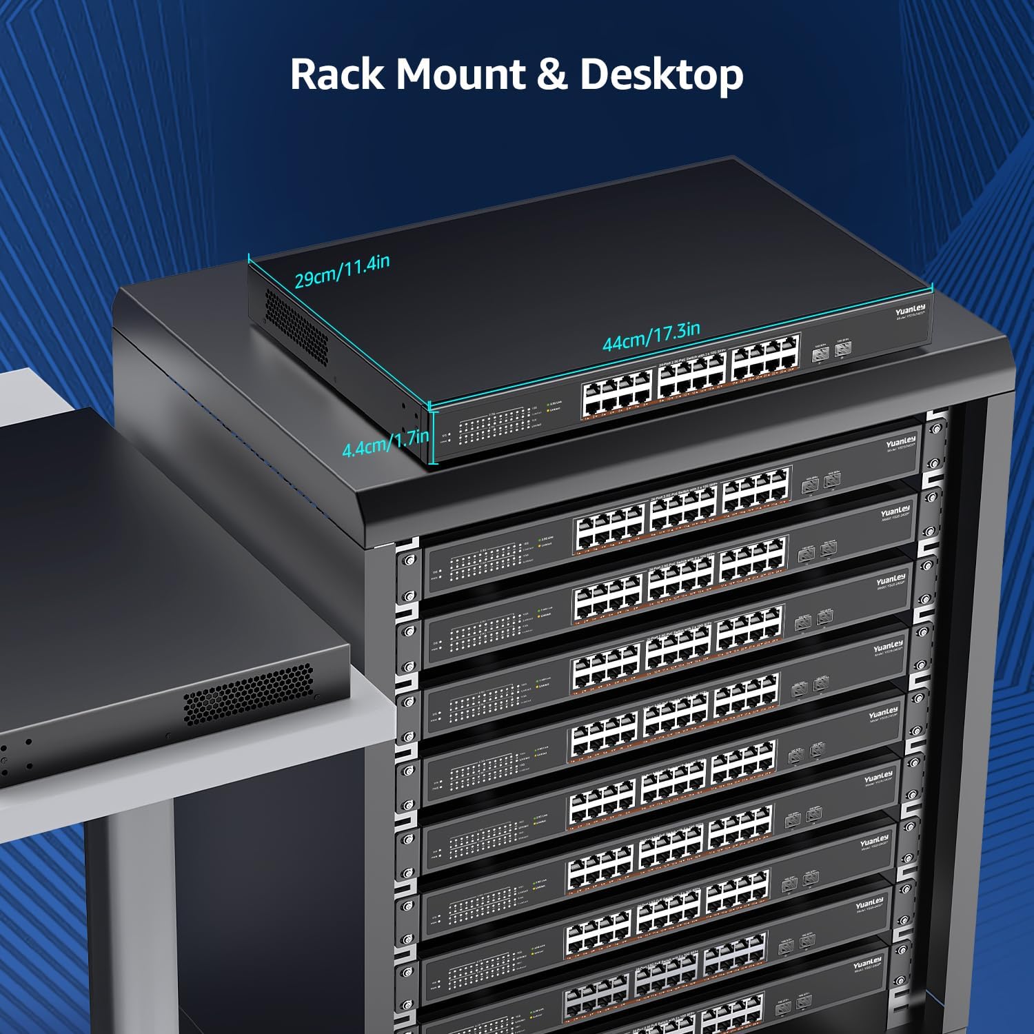 YuanLey 26 Port 2.5G PoE Switch Unmanaged, 24 x 2.5G Base-T PoE Ports, 2 x 10G SFP+, IEEE802.3af/at, 400W, Compatible with 100/1000/2500Mbps, Metal Case, Desktop/Rack Mount 2.5Gbe Network Switch