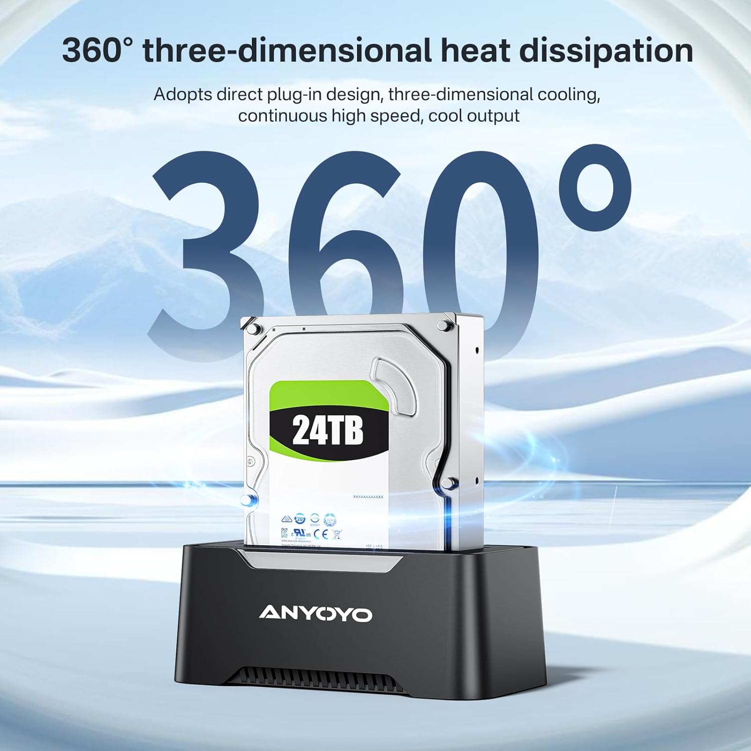 - 【Simple Plug & Play】The vertical design enclosure makes you easily insert and use a hard drive disk without any tools.