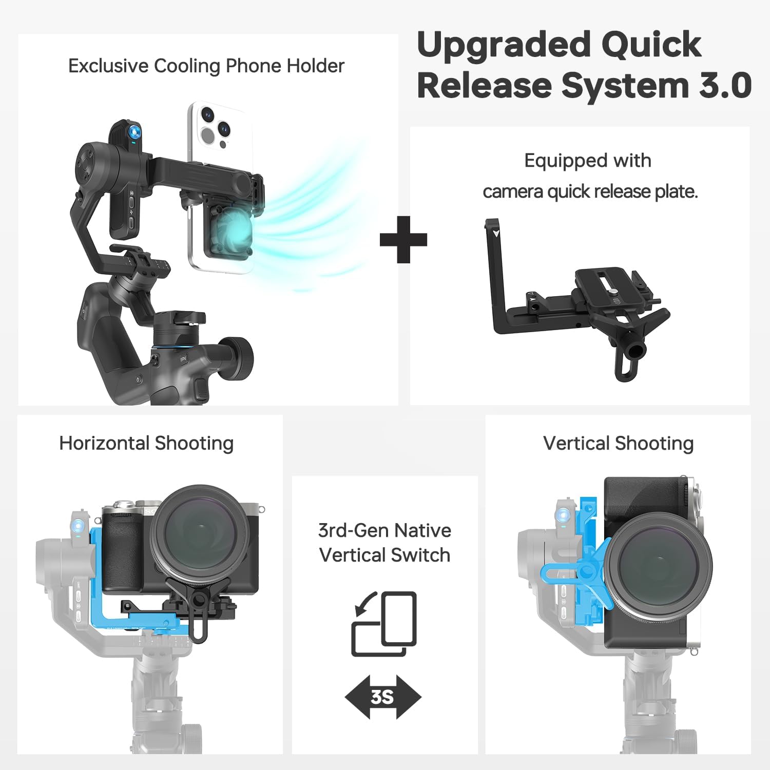 - New quick-release system + cooling phone clamp = switch from horizontal to vertical in seconds! Effortless mounting protects your phone from overheating. Perfectly gimbal stabilizer for TikTok/Reels/Shorts.