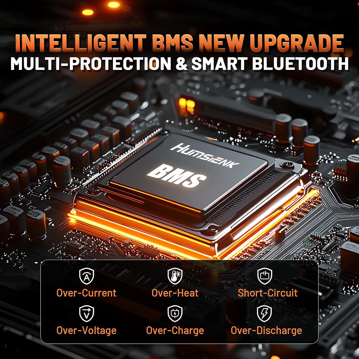 - 【Intelligent BMS & Bluetooth APP】HumsiENK Bluetooth LiFePO4 lithium battery has built-in upgraded smart BMS, connected to HumsiENK Smart APP(iOS/Android), allowing you to monitor the battery info(voltage, temp, etc.)in real time through the APP and help you cope with all kinds of situations at any time. In addition, the premium battery management system (BMS) provides overcharge, overdischarge, over-current, and short-circuit protection to ensure long-term safe use and efficiency of the battery.