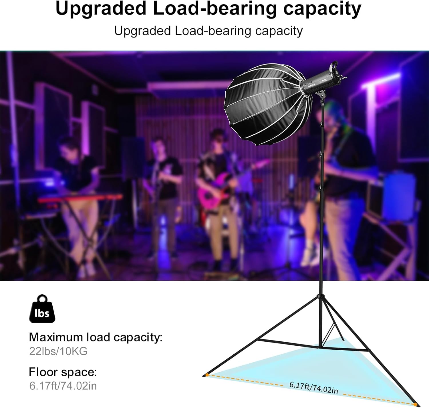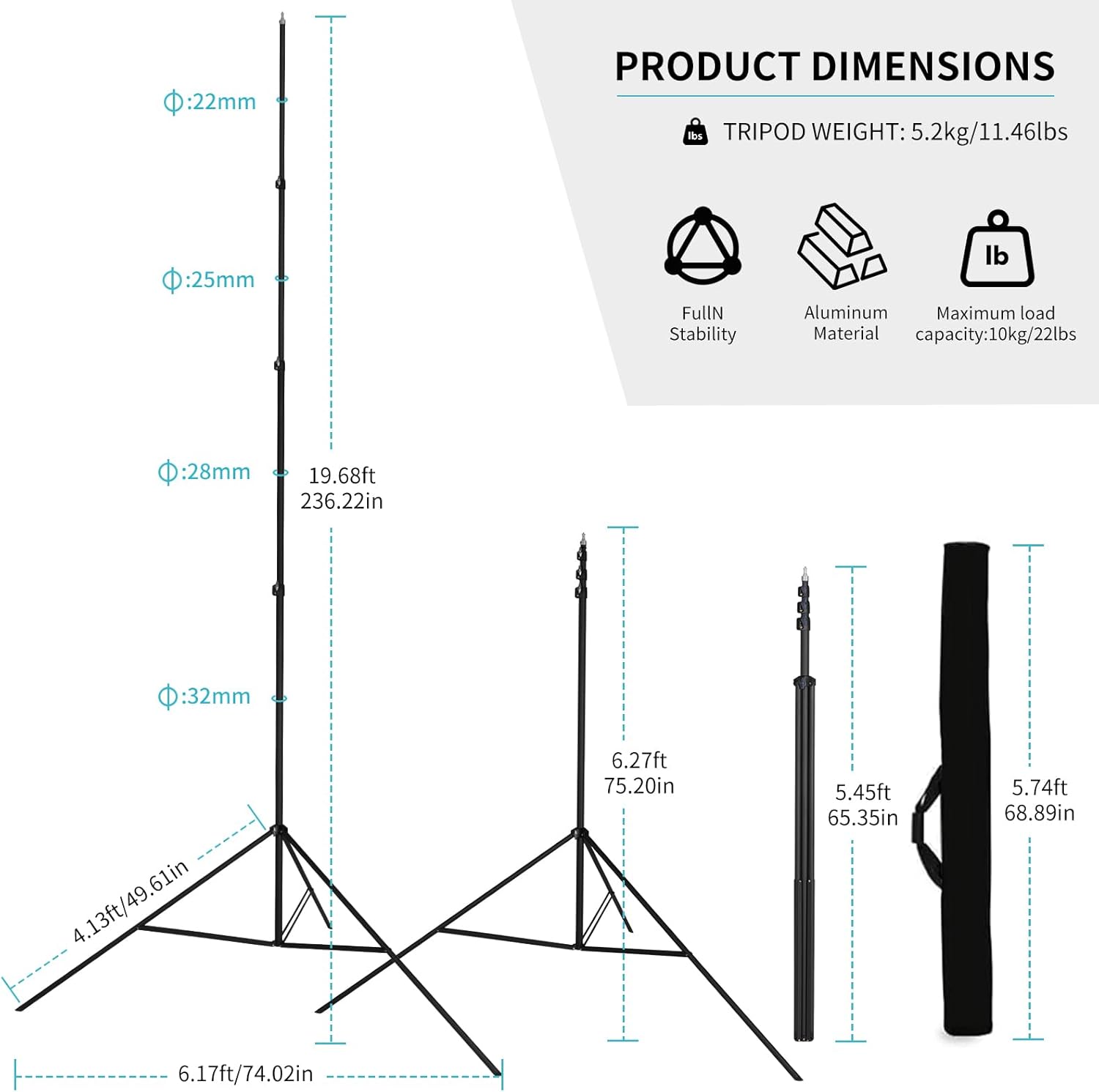 - 20FT Telescopic Height: This professional telescopic tripod extends from 6.43FT (77") to 20FT (240") with a 4-section center post, ideal for high-angle shots. The ultra-wide 75" (6.23FT) triangular base ensures rock-solid stability, supporting up to 17lbs (8kg)