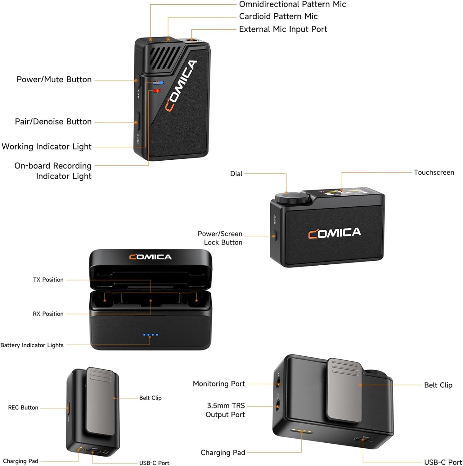 COMICA BooMax Wireless Lavalier Microphone for Cameras, Smartphones, 2.4G Internal Dual Lapel Mic with 32G Storage,Noise Cancellation,IPS Touchscreen for Vlogs, Interviews, Live Streamings,TikTok
