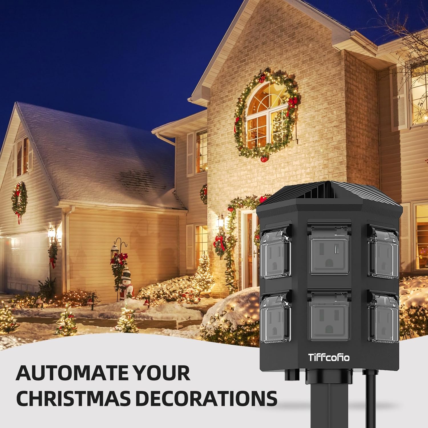 TiFFCOFiO Outdoor Power Strip Timer, Dusk to Dawn Light Sensor Countdown, 100 Feet Extension Cord Waterproof, 6 Grounded Outlets for Halloween and Christmas Decorations, ETL Listed (100 FT)