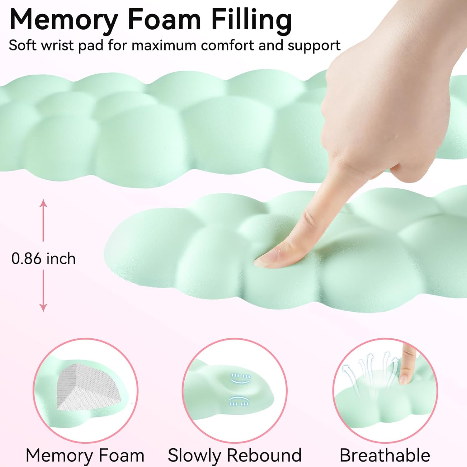 - Ergonomic Cloud Shape & Breathable Texture: This keyboard cushion features a cloud-inspired shape that follows the natural curve of your wrist, guiding it into a more relaxed and aligned position while reducing pressure points. As a cloud hand rest, its concave-convex surface enhances airflow to reduce stuffiness and boost comfort