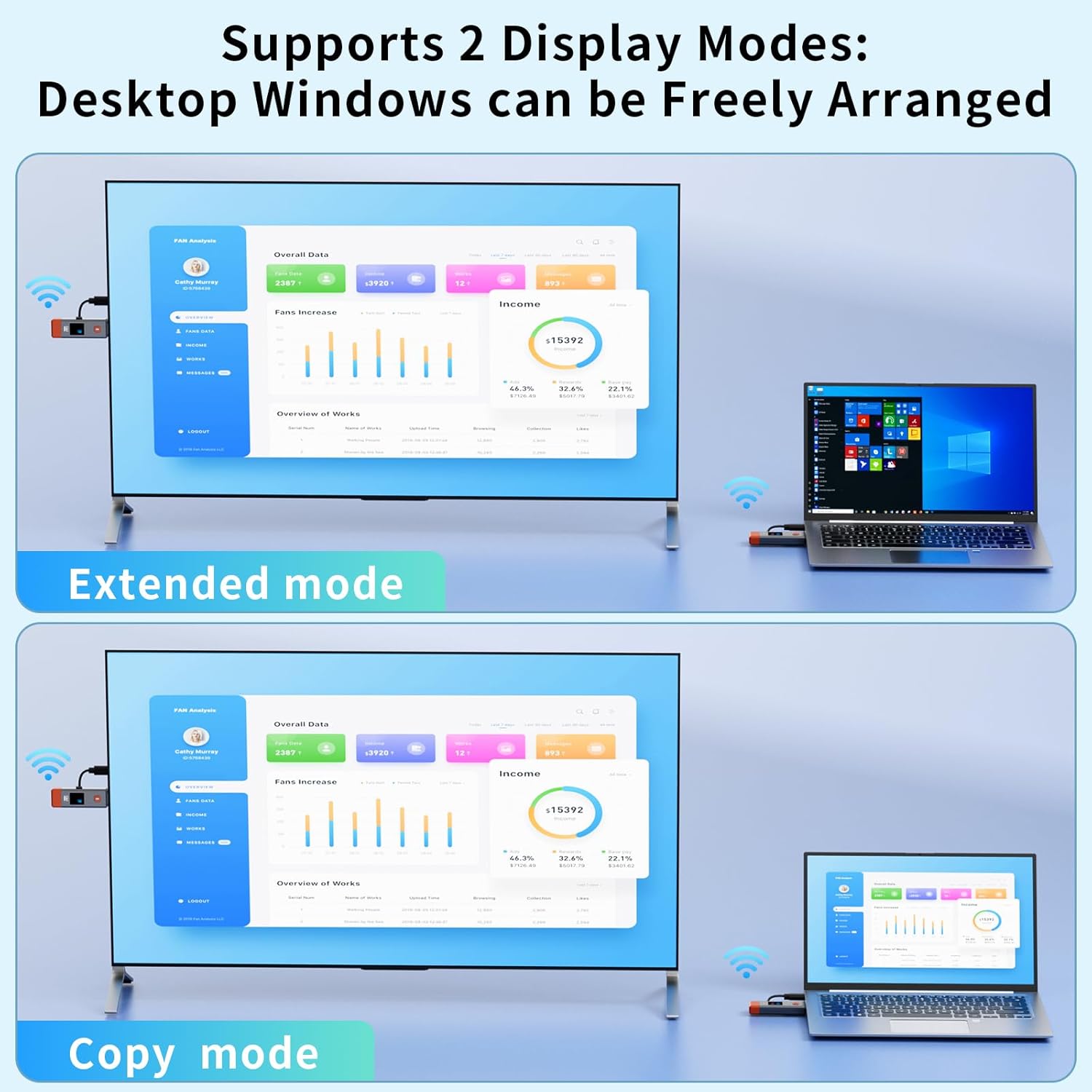 - ă1080P HD Image OutputăThose wireless HDMI transmitter and receiver support 4K decoding and 1080P/60Hz HD output. Image transmission is clear, stable and smooth. It is the best choice for sharing slides, pictures, videos and conference information. Make your meeting, classroom and any multimedia playback a more efficient and convenient playback experience(The wireless HDMI supports extended mode and duplicate mode)
