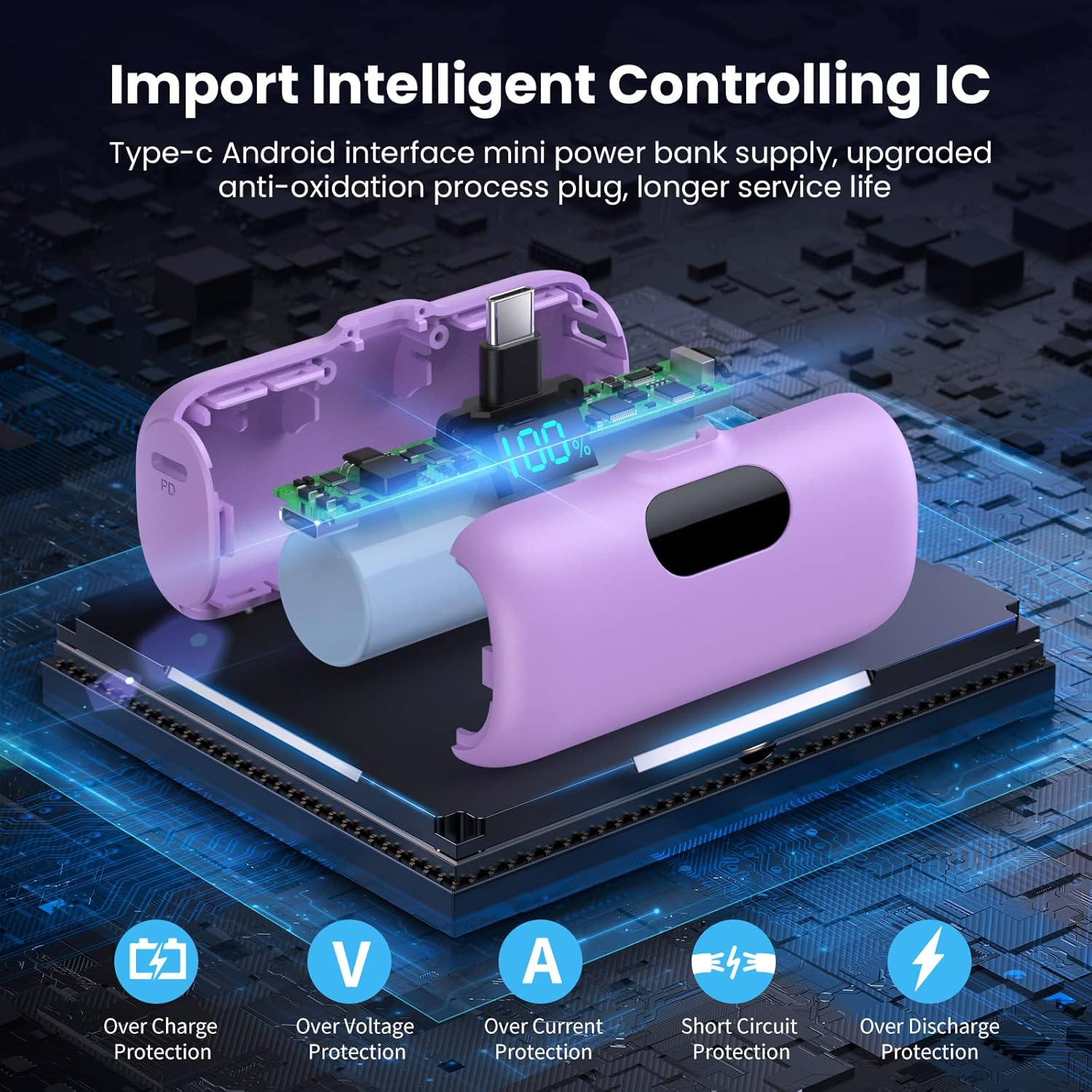 [2 Pack] Samll Portable Charger for iPhone 16/15 Series, 5000mAh 3A PD USB C Power Bank, Mini LCD Display Battery Pack Compatible with iPhone 16/16 Plus/16 Pro/15 Pro Max,Samsung,Android/Moto/LG etc