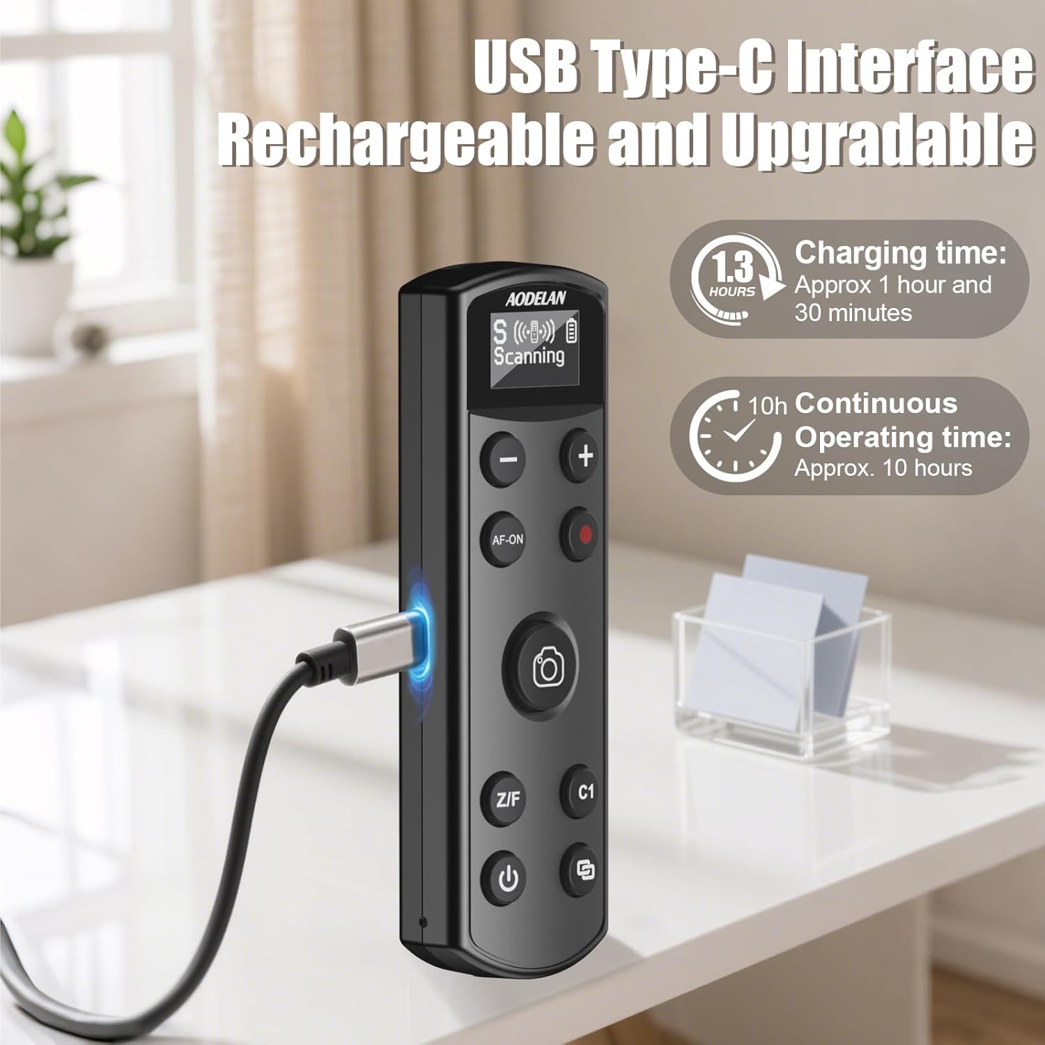 - OLED Screen & Type-C interface: The newly added OLED display screen visualizes your operations, making the current status clear at a glance and providing clearer and more specific display function settings. The included Type-C cable can directly charge the remote control, with a full battery life of about 10 hours, and the power can be saved by pressing the shutdown button. It can also be used for firmware upgrades to prevent future camera upgrades from causing incompatibility.