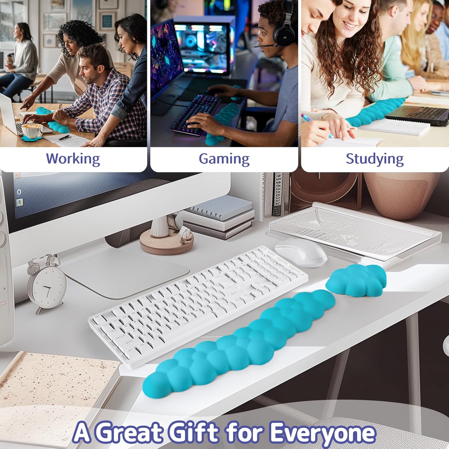 - 3-in-1 Cloud Desk Set:This 3-piece cute desk accessory set includes a keyboard wrist rest, a matching mouse wrist rest, and a cloud-shaped coaster. Designed for both function and aesthetics, it's a thoughtful office gift for family, friends and teachers, or coworkers who want to add comfort and style to their workspace