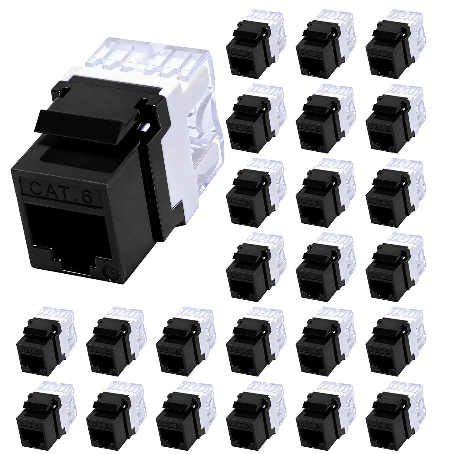 - 【Package Content】Includes 25 pcs 180 degree Cat6 keystone jacks (Black), safe for home, office, and computer room use